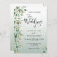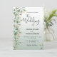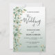 Sur le devant : Thème botanique. Dégradé vert, arrière - plan ombragé. Décoré de verdure, de ressorts et de feuillage avec de petites fleurs dorées. Écriture manuscrite moderne à grande main, typographie avec le texte : Le mariage de. Modèles pour Vos noms et les détails mariages. Texte noir. Arrière : arrière - plan de dégradé vert sage.