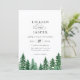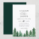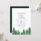 Faire-part de mariage rustique de la forêt aquarelle. De beaux arbres peints dans des tons verts à la mode avec un support couleur émeraude coordonné. L'invitation présente un style design typographique chic mélange de calligraphie et de type audacieux.