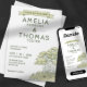 Célébrez votre journée spéciale avec ce charmant faire-part de mariage en bois dessiné à la main. Le design ludique présente une scène de forêt lunaire, idéale pour une célébration d'inspiration naturelle.
