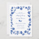 Invitation Mariage de frontière de la main bleue dessinée Whi