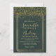 Chic or confetti vert foncé typographie mariage, avec double bordure géométrique.
