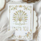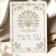 Ce carte de remerciements mariage présente un cadre doré délicat, orné de fleurs sauvages d'aquarelle et de courbes botaniques douces. Les oeuvres d'art florales comprennent des roses rousses, des bleus de fleurs de maïs, des jaunes de beurre et des verts feuillus, le tout illustré d'un charme vintage et d'une légère touche peinte à la main. Le design du cadre est ouvert et aéré, offrant une présentation fraîche et élégante pour les mariages romantiques.