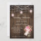 Invitations de mariage rustiques avec une bocale de mason remplie de fleurs sauvages roses avec la respiration et la verdure du bébé. Le dessus de la carte est muni de lampes à cordes blanches avec jarres en maçon rose pâle sur un arrière - plan patiné en bois de grange. Les zones de texte sont faciles à personnaliser avec vos propres informations. N'oubliez pas d'ajouter vos initiales à la balise vintage ! Si vous désirez ce design sur un produit correspondant, ou si vous avez besoin d'aide, veuillez me contacter par l'intermédiaire de mon magasin.