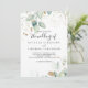 Cette calligraphie d'eucalyptus or mariage d'invitation est parfaite pour un mariage rustique. Ce design artistique présente une aquarelle dessinée à la main, de l'or et du feuillage vert, une beauté naturelle inspirante.