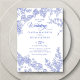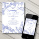 Découvrez l'art de l'amour avec ce design de faire-part de mariage de chinoiserie bleu Delft. La superbe typographie et les délicates oeuvres d'art bleues confèrent à ce design une atmosphère romantique et vintage. Parfait pour votre mariage vintage ou de jardin. Commandez vos invitations imprimées et les fournitures de fête ou téléchargez vos invitations numériques dès maintenant pour une journée qu'ils n'oublieront jamais !