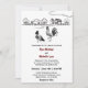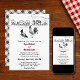 Cette faire-part de mariage présente deux poulets un coq et une poule en amour. Ils sont dressés contre une charmante ferme de campagne à trait de trait.