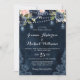 Belle faire-part de mariage boho fleurie dispose d'aquarelle peinte à la main graphismes floraux / roses dans les tons riches de bleu marine et rose rousse / pêche et String lumières avec jarres de mason et dentelle bleu marine. Veuillez me contacter pour toute aide sur la personnalisation ou si vous avez besoin d'un autre produit avec ce design.