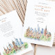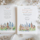 Célébrez votre journée spéciale avec ce faire-part de mariage unique avec une belle aquarelle représentant Francfort, Allemagne, skyline. L'avant contraste avec les bâtiments historiques et les gratte-ciel modernes, offrant un mélange unique de l'ancien et du nouveau. Rendu dans un style d'aquarelle douce et artistique, la scène capture le charme de l'Altstadt (Vieille Ville) à côté des immeubles emblématiques des tours. Le revers, conçu pour "The Finer Details", poursuit cette scène fascinante, mettant en évidence le skyline de Francfort le long de la rivière Main, avec l'ajout d'un pont, le reflet de l'eau, et le même feuillage élégant que l'avant. La douce aquarelle et les éléments contrastés créent une invitation vraiment mémorable. Il est parfait pour un mariage de destination à Francfort, une fête à thème allemand, ou pour tout couple à la recherche d'un design unique et élégant pour leur journée spéciale.