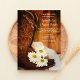 Invités Invitations à vos nuptiaux de ferme à venir avec le rustique chic White Daisies et Cowboy Boots Country Western Faire-part de mariage. Ce charmant invitation à thème de ranch personnalisé présente une photo florale de bottes de cowboy en cuir marron, fleurs de fleur marguerite blanche, voile de mariée blanche et un arrière - plan patiné en bois de grange brun.