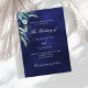 Une invitation design et moderne à la mariage. Arrière - plan bleu marine, décoré de verdure. La couleur bleue est inégale. Personnalisez et ajoutez vos noms et détails.