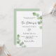 Un arrière - plan blanc décoré de sprigs de verdure d'eucalyptus. Personnalisez et votre nom et les détails de la cérémonie. Lettres de couleur noire. Retour : arrière - plan vert