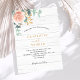 Bois blanc comme arrière - plan. Décoré d'or rose et de fleurs roses rousses, de fleurs roses et de feuilles d'eucalyptus vert aquarellés, de sprigs, de verdure et d'une fausse feuille d'or. Personnalisez et ajoutez vos noms et les détails du mariage. Lettres noires et dorées.