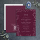 Invitation Mariage de monogramme Bourgogne à feuilles élégant