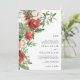 Ce magnifique faire-part de mariage de vacances moderne présente d'élégantes fleurs rouges d'aquarelle avec des baies sèches, des pinecones et de la verdure. L'arrière de la carte comprend la même illustration. Trouvez les articles correspondants dans la collection de Noël botanique rouge hiver de vacances.