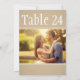 Les élégantes cartes personnalisées de table de mariage peuvent être personnalisées avec une photo fiançailles de la mariée et du marié. Le design comporte du texte de numéro de tableau blanc sur un arrière - plan en papier marron kraft rustique. Pour customiser : tapez le numéro du tableau, cliquez sur "modifier" par la photo par défaut pour télécharger votre propre photo, et ajoutez cette carte de numéro de table individuelle à votre panier. Répétez l'opération pour tous les numéros de table dont vous avez besoin.
