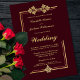 Un faire-part de mariage bordeaux moderne avec une bordure et un texte de script en faux or. Cette invitation comprend une demande de réponse RSVP en bas.