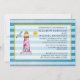 Une faire-part de mariage à thème nautique. Conçu avec un motif rayé bleu et un cadre bordé doré semi-transparent superposé. Un phare rayé rouge et une boule de plage, un soleil souriant et une mouette volante au loin positionné à l'intérieur du cadre. Personnalisez avec vos détails mariages. Parfait pour un mariage maritime / côtier décontracté.