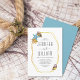 Ce faire-part de mariage est doté d'un cadre polygonal or époustouflant avec votre texte, et de trois beaux coquillages d'aquarelle en beige et bleu dans le coin supérieur gauche et en bas à gauche. L'arrière de l'invitation est d'une couleur bleue solide.