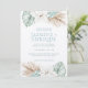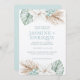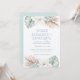 Invitation vos amis et votre famille à votre mariage de plage d'hiver avec cette belle aquarelle tropicale feuilles et l'invitation poinsettia. Les couleurs utilisées comprennent, ardoise bleue, vert forêt, ivoire et bronzette.