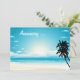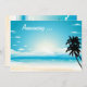Océan bleu turquoise et ciel bleu clair. Ondes océaniques s'écrasant sur le rivage, mouettes flottant dans le ciel et une silhouette de palmiers - invitations de mariage entièrement personnalisables et extras assortis.