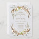L'élégante faire-part de mariage rustique est ornée d'une couronne de coton d'aquarelle et de plumes de faisan sur un arrière - plan gris clair.