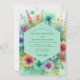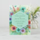 Une prairie vibrante éclate avec un ensemble de fleurs dans des tons de sarcelle doux, de violets et de coraux. Des pétales délicats à l'aquarelle créent une atmosphère fantaisiste et romantique pour votre jour spécial. Ce design évoque un sentiment de beauté naturelle et d'enchantement.