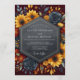 Cette conception florale sombre présente une riche palette de marron profond, de jaune doré et de bleu-vert. Les tournesols vibrants et les roses bleu-vert luxuriantes créent un contraste saisissant sur le fond sombre. Le feuillage complexe et les fleurs orange brûlé ajoutent une sensation d'abondance et de chaleur. Cette œuvre d'art est idéale pour ceux qui recherchent une esthétique automnale audacieuse et à fort contraste.