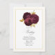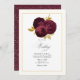 Invitation vos invités dans le style avec cette élégante invitation de mariage avec un riche bouquet de rose bordeaux accentué de détails dorés. La typographie raffinée et le design intemporel en font un lieu idéal pour les mariages formels et romantiques. Le côté inverse de la calligraphie vintage apporte une touche de sophistication supplémentaire. Customisez facilement le texte pour convenir à votre journée spéciale.
