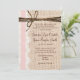 Il présente un arrière - plan rustique imprimé en burlap des deux côtés de l'invitation. L'invitation a une dentelle imprimée sur le côté, avec un ruban rose. Le dessus est orné d'un imprimé à ficelle. Le burlap, la dentelle et la ficelle ne sont que des dessins imprimés. Il ne s'agit pas d'un tissu de burlap réel ou d'une dentelle ou ficelle réelle.