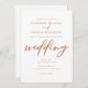 Ce faire-part de mariage brun sienne est une couleur rouge chaude pour une mariée ou un marié à la recherche d'un mélange entre doux et masculin. Le joli script tan minimaliste comporte une simple typographie cursive ainsi qu'une police serif chic et moderne. Ce brun doux est parfait pour un événement d'automne après-midi.