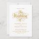 Cette élégante faire-part de mariage blanche et or est parfaite pour un mariage moderne. Le design simple présente une élégante calligraphie dorée sur un arrière - plan blanc propre. La carte d'invitation comprend les détails du mariage au dos au lieu de payer une carte d'enceinte séparée.