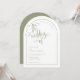 Une faire-part de mariage élégante et moderne en forme d'arc vert et blanc avec un accent manuscrit dans l'expression "le mariage de". Personnalisez le modèle avec vos coordonnées de mariage. © Kimbellished, LLC