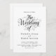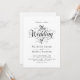 Cette élégante faire-part de mariage en noir et blanc conviendra parfaitement à une mariage moderne. Le design simple présente une élégante calligraphie noire sur un arrière - plan blanc propre. La carte d'invitation comprend les détails du mariage au dos au lieu de payer une carte d'enceinte séparée.