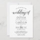 Vous êtes invité à un mariage époustouflant ! Ces invitations de mariage modernes et chic en noir et blanc présentent un design typographique noir élégant avec un accent de script de calligraphie audacieux et un texte personnalisé élégant qui peut être personnalisé avec les noms de mariée et de mariée, la date du mariage, l'emplacement de la cérémonie et la réception pour suivre les détails. Veuillez acheter notre collection moderne de Mariages de script noir et blanc pour coordonner les conceptions.