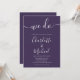 Elégante faire-part de mariage de signature violette avec des noms de style signature, cette élégante faire-part de mariage bleu et blanc poussiéreux peut être personnalisée avec vos informations en lettrage blanc chic. Conçu par Thisisnotme©