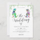 Si vous et votre partenaire aimez les dinosaures alors ce thème de dinosaures amusant faire-part de mariage de script élégant est parfait pour votre journée spéciale. Avec un marié et marié en dinosaure coloré avec un feuillage d'eucalyptus aquarelle et facile à utiliser des modèles de script élégants, vous pouvez ajouter les noms de mariée et mariée, la date mariage et tous les détails mariages importants. Les illustrations uniques amusantes en dino comprennent bleu rose violet vert turquoise et pêche peint T-Rex marié et marié portant un voile et arc cravate et aquarelle verdure botanique dans les tons verts avec un magnifique script moderne élégant. OEuvre originale de l'artiste Catherine Sweetman