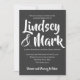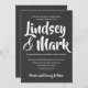 Ardoise de tableau de bord avec audacieux et amusant, noms de script main en faire-part de mariage blanc avec une formulation moderne.