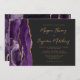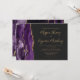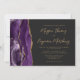 Le bord gauche de cette élégante faire-part de mariage moderne est orné d'une bordure d'aquarelle violette ornée d'une parties scintillant en faux or. Le texte personnalisable combine un script moderne couleur or, des polices cuivre et italique sur un arrière - plan noir ardoise. L'envers est assorti d'une agate violette et dorée.