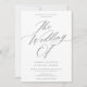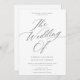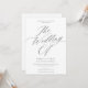 Ce magnifique faire-part de mariage présente un script de calligraphie gracieux en gris foncé, un arrière - plan blanc classique, et une typographie élégante. Ce design élégant est un choix fabuleux pour de nombreux styles d'événements, du classique au boho. Vous pouvez customiser encore plus ce design en ajoutant une photo ou un texte supplémentaire à l'arrière. Reportez-vous à la collection pour la coordination des éléments.