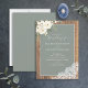Entrez dans un monde rustique et rêveur avec notre Faire-part de mariage de dentelle en bois floral blanc Eucalyptus vert Sage. Cette élégante invitation allie un mélange charmant d'éléments rustiques et botaniques, dont une délicate végétation d'eucalyptus, des fleurs blanches immaculées et des textures de bois miel. La typographie manuscrite ajoute une touche d'élégance, tandis que la teinte verte sauge crée un sentiment de sophistication terrestre. Parfait pour les couples qui veulent imprégner leur mariage de beauté naturelle, cette invitation ne manquera pas de ravir les clients. Voir la suite complète ici : https://www.zazzle.com/collections/sage_green_eucalyptus_lace_wood_wedding-119914561691834427 Copyright Anastasia Surridge pour Invitations élégants, tous droits réservés.