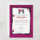 Faire-part de mariage avec une jolie illustration d'une fille et un mec zombie, totalement amoureux tendant la main vers l'autre avec un coeur rose volant au-dessus de leur tête. Mignonne et adorable mais aussi déplaisante, hideuse et amusante ! Placé sur un arrière - plan de couleur cerise foncé. Des taches de peinture rouge et des éclaboussures de peinture entourent vos lettres de faire-part de mariage. Contient les mots : "s'il vous plaît rejoignez-nous alors que nous célébrons notre amour inconditionnel", qui convient pour une invitation de mariage zombie thème.
