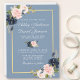 Elégante aquarelle bleu foncé rose flou floral, carte Faire-part de mariage cadre or