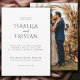 Un élégant faire-part de mariage de typographie moderne, avec une typographie serif chic avec des éléments de balai balayés, et votre photo mariage sur le dos. Remplacez l'échantillon de photo par votre propre photo mariage posée. Disponible en version imprimée, en téléchargement numérique ou les deux.