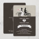 Mariée en vélo en tandem mignonne et mariage de chambre .. invitations de mariage dans les tons marron avec une mariée en robe mariage avec un petit coeur rouge sur le voile et un marié dans son costume - annonces mariages modernes .. annonces mariages totalement personnalisables de Ricaso