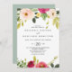 Cette faire-part de mariage décontractée fleurie rose verdoyante est parfaite pour un mariage moderne. Le design présente des peintures à la main de magnifiques pivoines roses, rousses et jaunes avec feuillage vert.