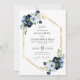 thème de couleur marine mariage avec bleu marine et fleurs bleu clair avec élégant script noir. Le texte et les couleurs peuvent être modifiés.