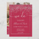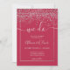 Confetti en faux argent moderne, mariage d'initiales de script de cadre géométrique, ajoutez 4 de votre photo de couple préférée, un faire-part de mariage simple, minimaliste et chic, ajoutez vos initiales à l'arrière. La couleur magenta est entièrement modifiable.