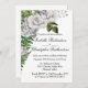 Cet invitation de mariage très élégant dispose d'un magnifique bouquet floral de roses blanches, pétales de rose vert et frondes de foune qui le rendrait très approprié pour un mariage de jardin ou tout autre type de mariage à thème botanique. Le design comprend également des baies blanches et de petits feuilles verts. L'envers de l'invitation est muni d'une seule et grande fronde de fougères sur un arrière - plan blanc clair.