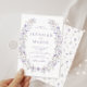 Vous apprécierez le raffinement raffiné de ce faire-part de mariage rustique, qui présente d'élégantes illustrations d'une délicate couronne pastel violet et lilas. Un choix idéal pour ajouter du charme à vos fêtes de printemps ou d'été.