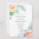 Invitation de mariage exotique à la menthe, rose et jaune, avec des pivoines, eucalyptus, rosehips, succulent, lisianthus, feuilles menthos et succulents